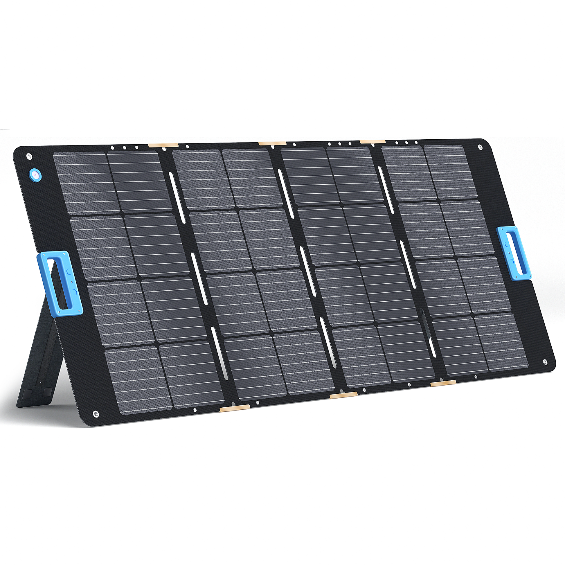 Portable solar panel is IP68 waterproof and has been designed for outdoor use to withstand harsh weather. The four panels themselves are covered with ETFE. This not only helps with power conversion, but also prevents scratches.
